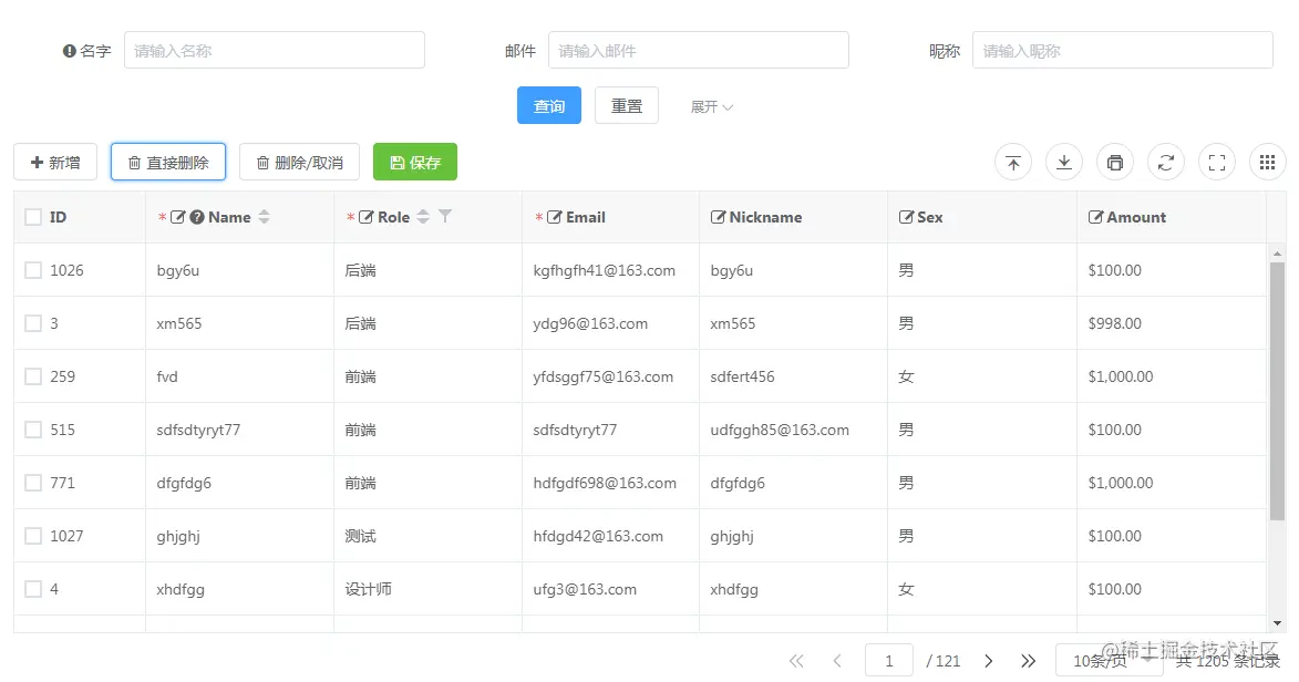 - 为单行编辑表格而设计,支持增删改查及更多扩展,强大的功能的同时兼具性能