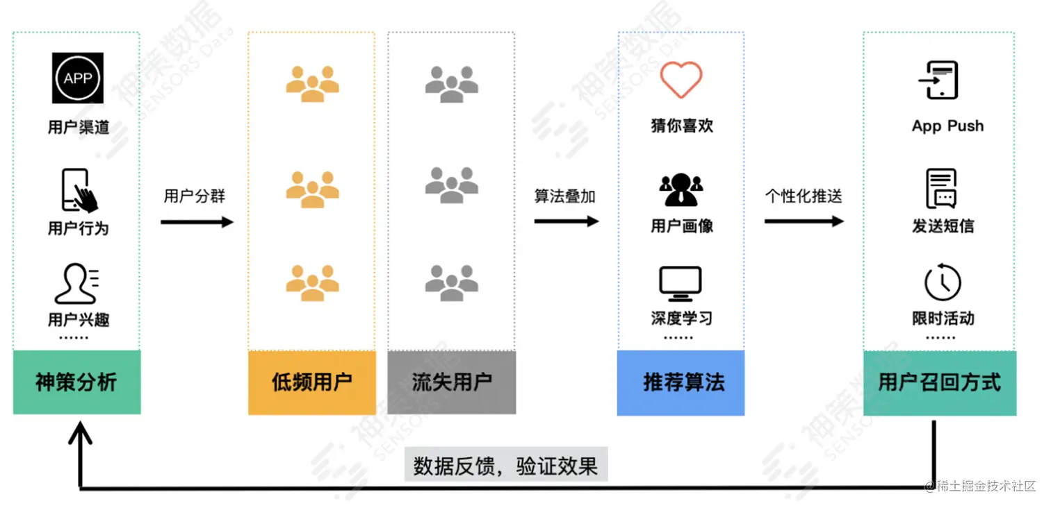 这是一个基于数据流的“洞察-决策-行动-反馈”运营框架闭环,也是神策一直给客户带来的价值。除产品之外,在营销和运营方面亦是如此。