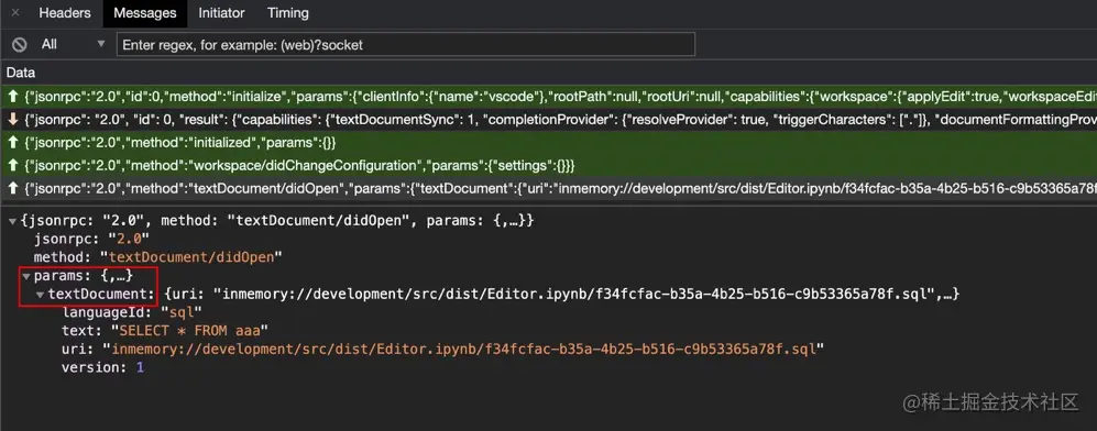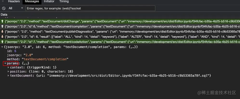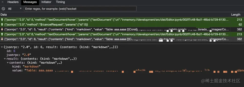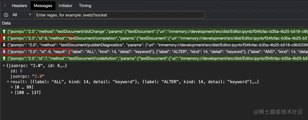 这里看到 Server 响应的内容中有的会 id 字段, 该id就是Client 发送的id, Server通过此来标记响应哪个事件,Client会根据此处理对应请求的事件 原因是有些行为会多很短时间内多次触发, Client可以单独取消某次事件 也会有写请求体和响应体中没有id的情况, 那会通过method 决定事件类型