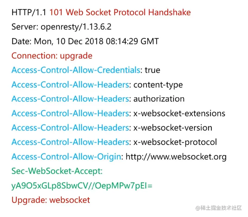 Sec-WebSocket-Accept 是基于客户端传递的 Sec-WebSocket-Key 计算而来。它有一个公开的算法
