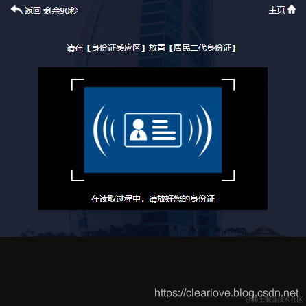 我在做一个酒店自助机业务的时候出现这样一个情况,首先是客人入住,那么这个时候客人入住的时候需要选择是有没有预定过,如果有预定的话,那么就直接刷身份证或者输入订单号,就可以查出来预定的信息,那么客人续住的时候也是直接刷身份证,拿到在住信息,客人退房的时候,也同样是刷身份证进行退房的操作,那么这个时候出现了一个比较恶心的情况,就是这三种操作都是需要刷身份证的页面的,也就是这个页面:
