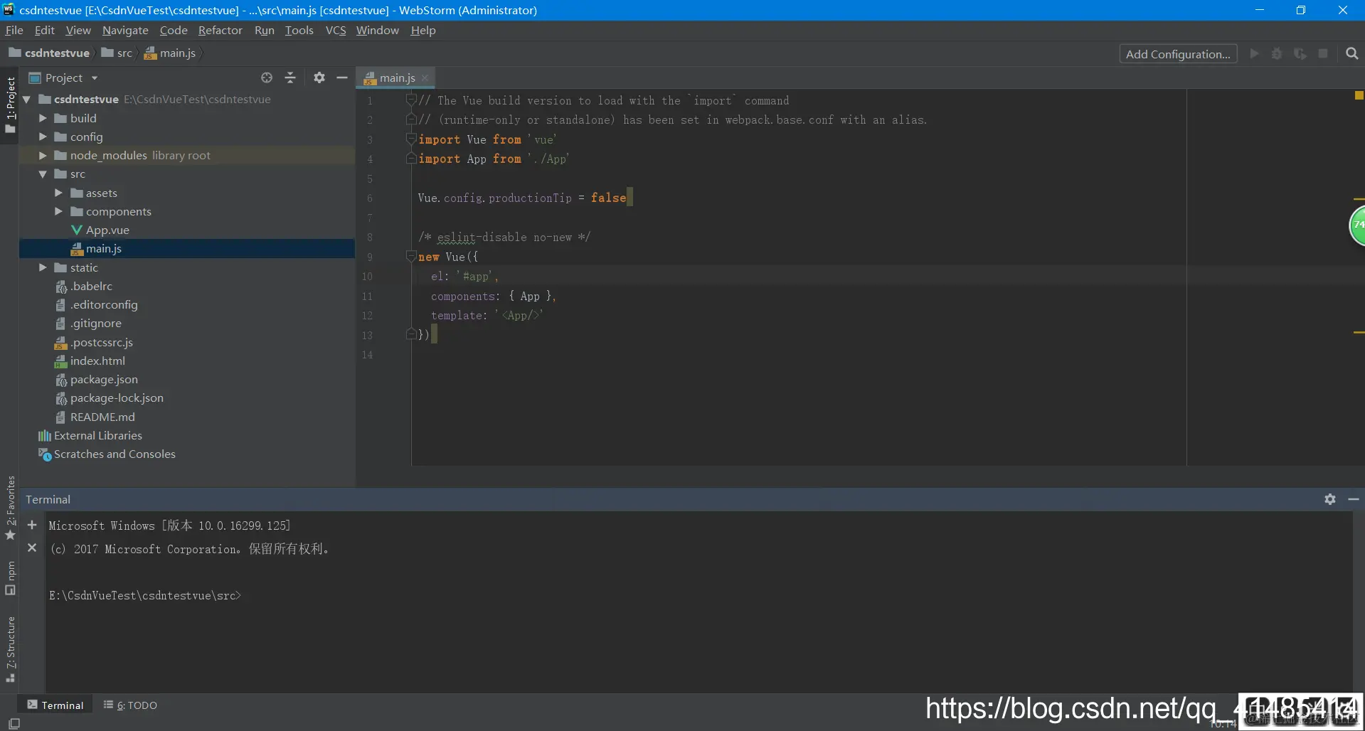 正所谓“工欲善其事必先利其器”,一个好的编辑软件对于vue来说还是很重要的,毕竟这是一个需要启动的渐进式框架,那么我这里使用的是webstrom,下面我会说使用它的优势。我们分两部分说,第一部分说搭建的过程,第二部分说vue的一些优势。