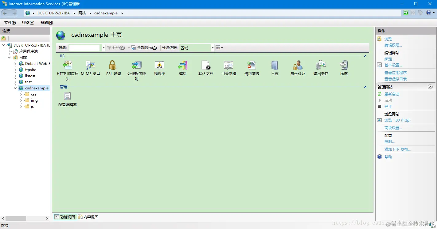 IIS是什么我之前的文章写过了,有兴趣的可以看一下,我是在写搭建FTP服务器的时候写的,原文,这里就不介绍,今天说一下怎么搭建一个局域网的服务器。
