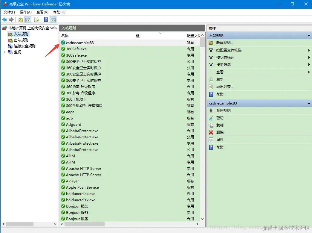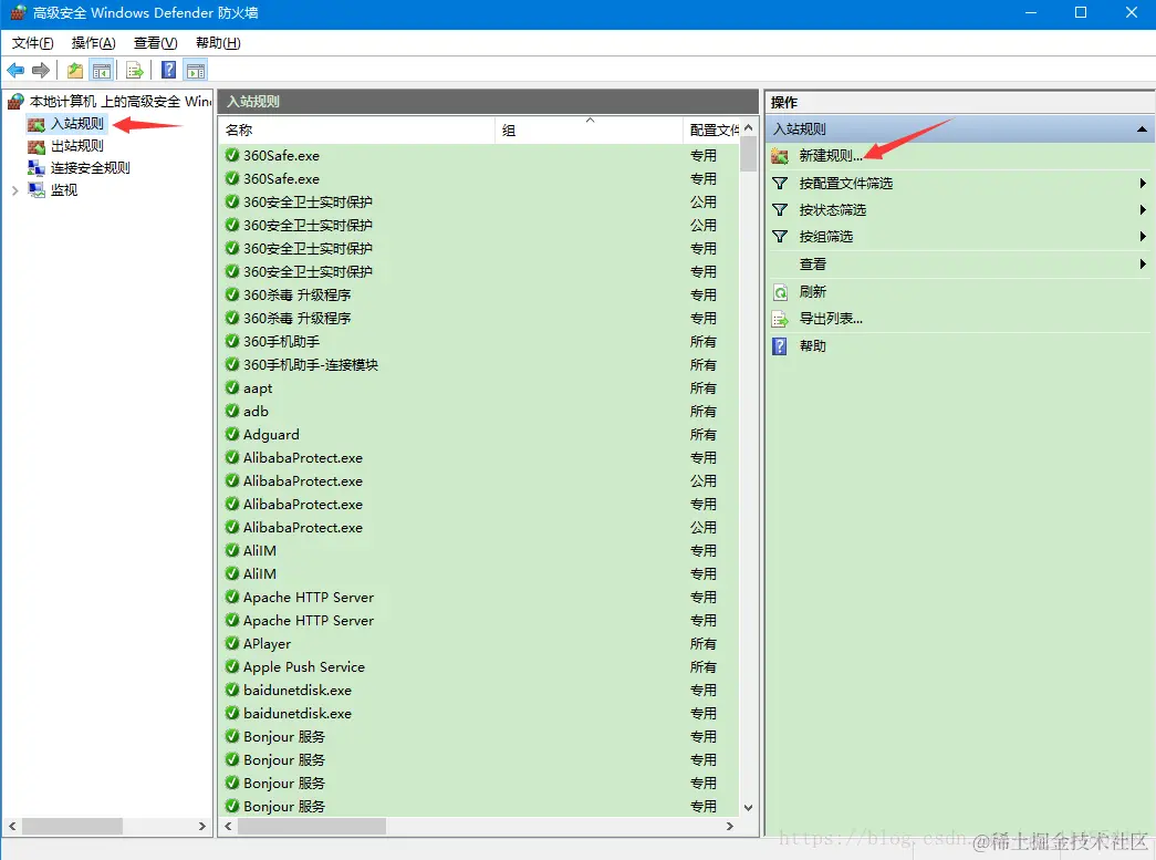 下面说一下防火墙的问题,如果别人访问您的页面的时候不可以访问,上面的您也没有问题,那么就可能是防火墙的问题。最简单的办法是直接关闭防火墙,但是这样不安全,我们可以只打开我们设置的端口,下面说一下怎么做: