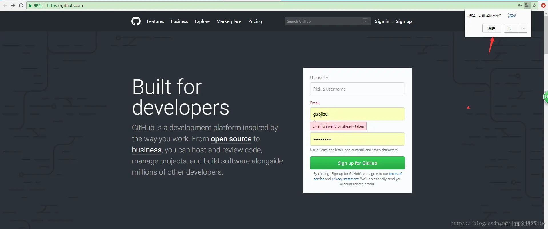 这是github的官网登录界面,当我们点击翻译的时候,会直接翻译,就像这样: