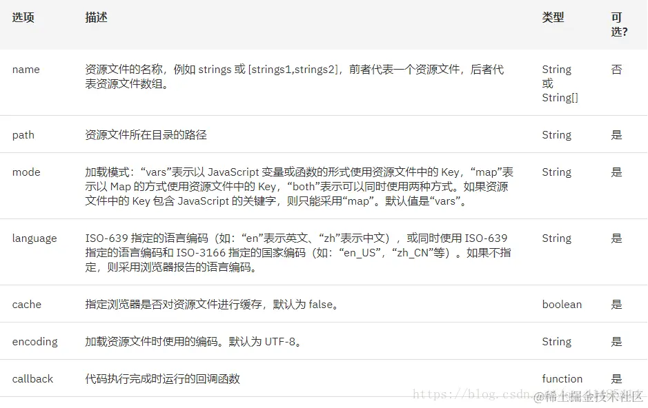 要使用i18n自然需要导入i18n.js文件,文件可以直接到我csdn下载,也可以网上找一下,i18n下载。下面我们说一下配置的参数: