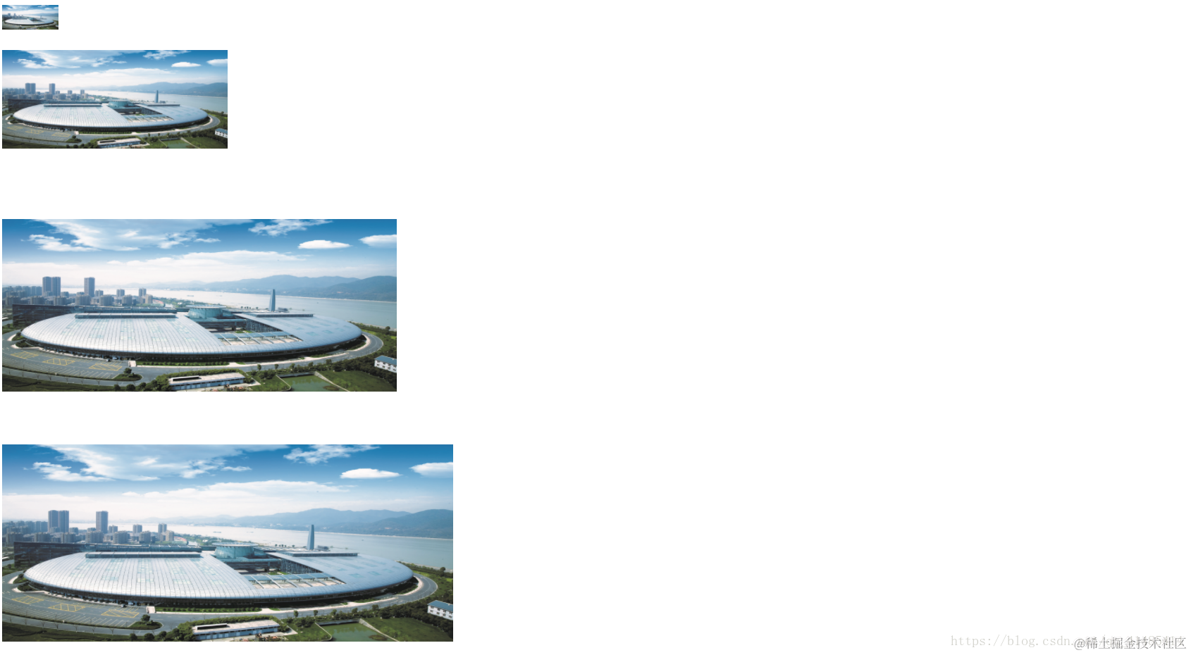 这是之前的比较小的图片,认真的可以发现我们最后一张是和之前的一张的宽度一样的,那么其实我们设置的时候不是的,我们写的是70rem的宽度,为什么会出现这样的情况呢?是因为我们在设置一个比原图宽度还要宽的数值的时候,图片会出现失真的情况,为了避免这样的情况出现,所以他会显示原图的大小,而不会变化的很大!