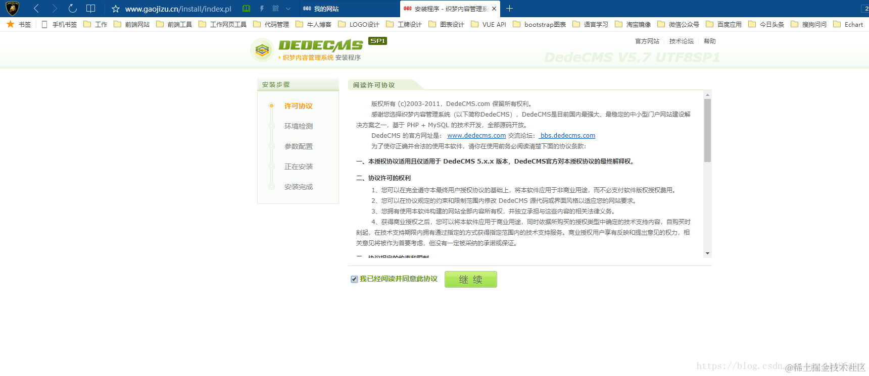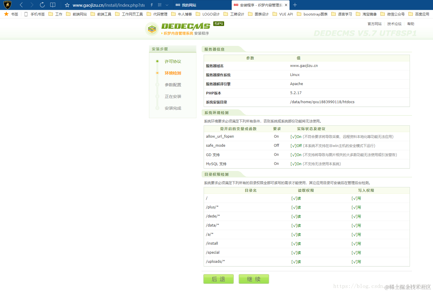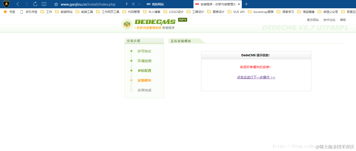 第四步:等待上传结束以后,我们开始安装线上织梦站点