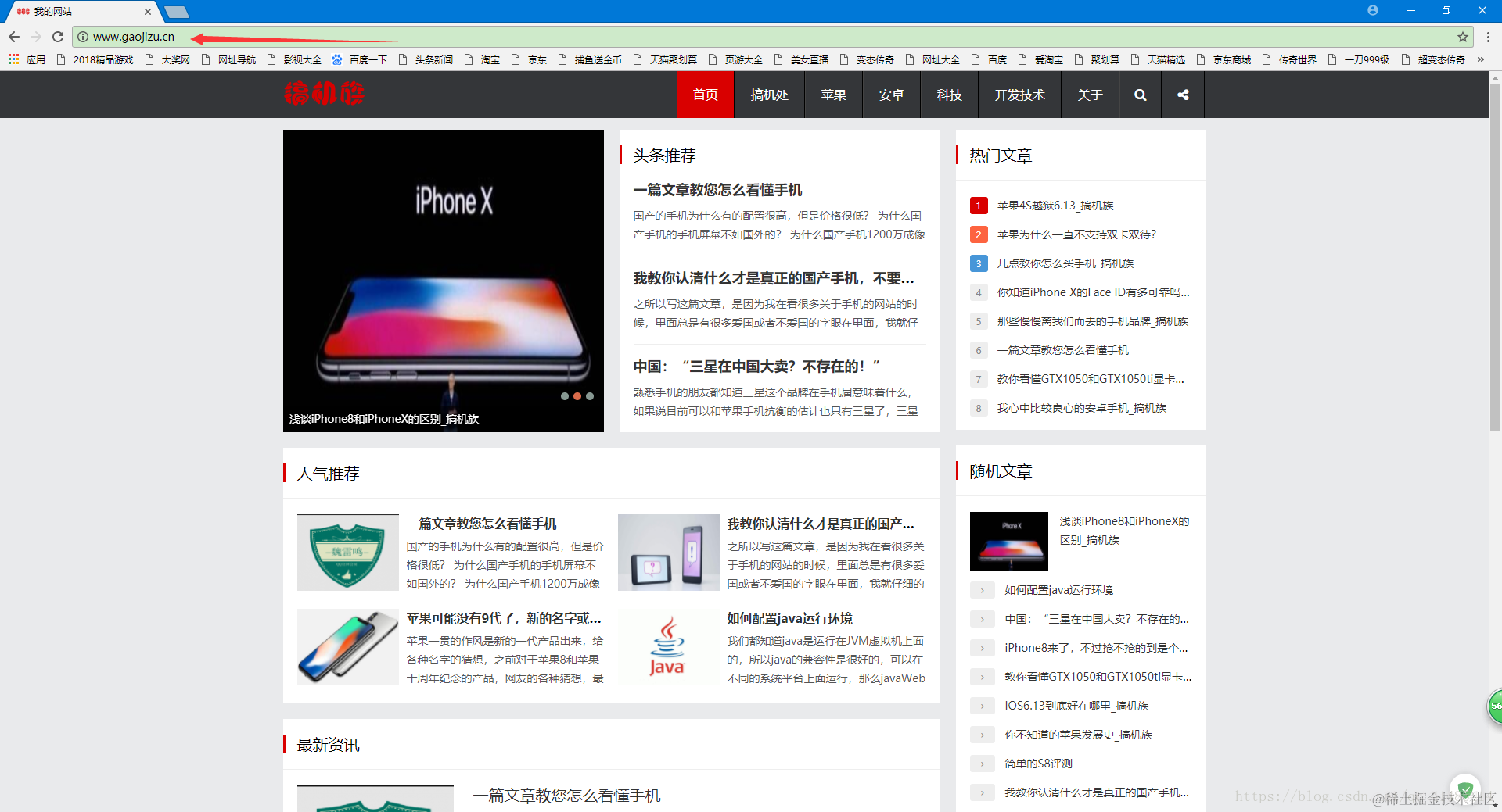 首先我用的是我自己已经上线好的网站来做例子,我的网址是:www.gaojizu.cn,这是我已经上线好的网站,我会把我的网站的源码下线,然后将我之前给你们写的例子上传到我这个空间上,来实现一个整个的过程,说实话还是有一定风险的,毕竟我的网站维护了那么久了,还是有一定风险出问题的,但是现在买新的空间和域名的话,又要等半个月才可以备案结束,没办法,只能使用这个了,没关系,出了问题还是有办法补救的,ok,我们开始,首先看一下我的网站是没有任何问题的: