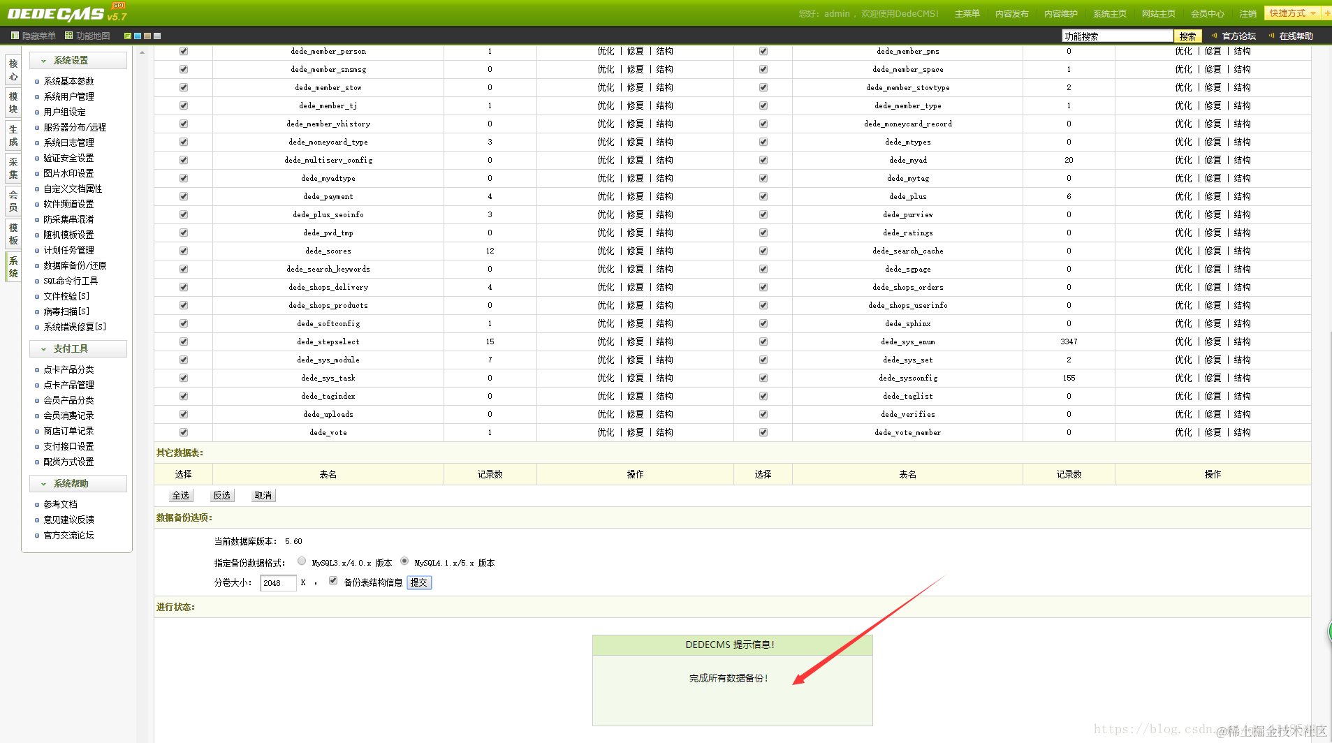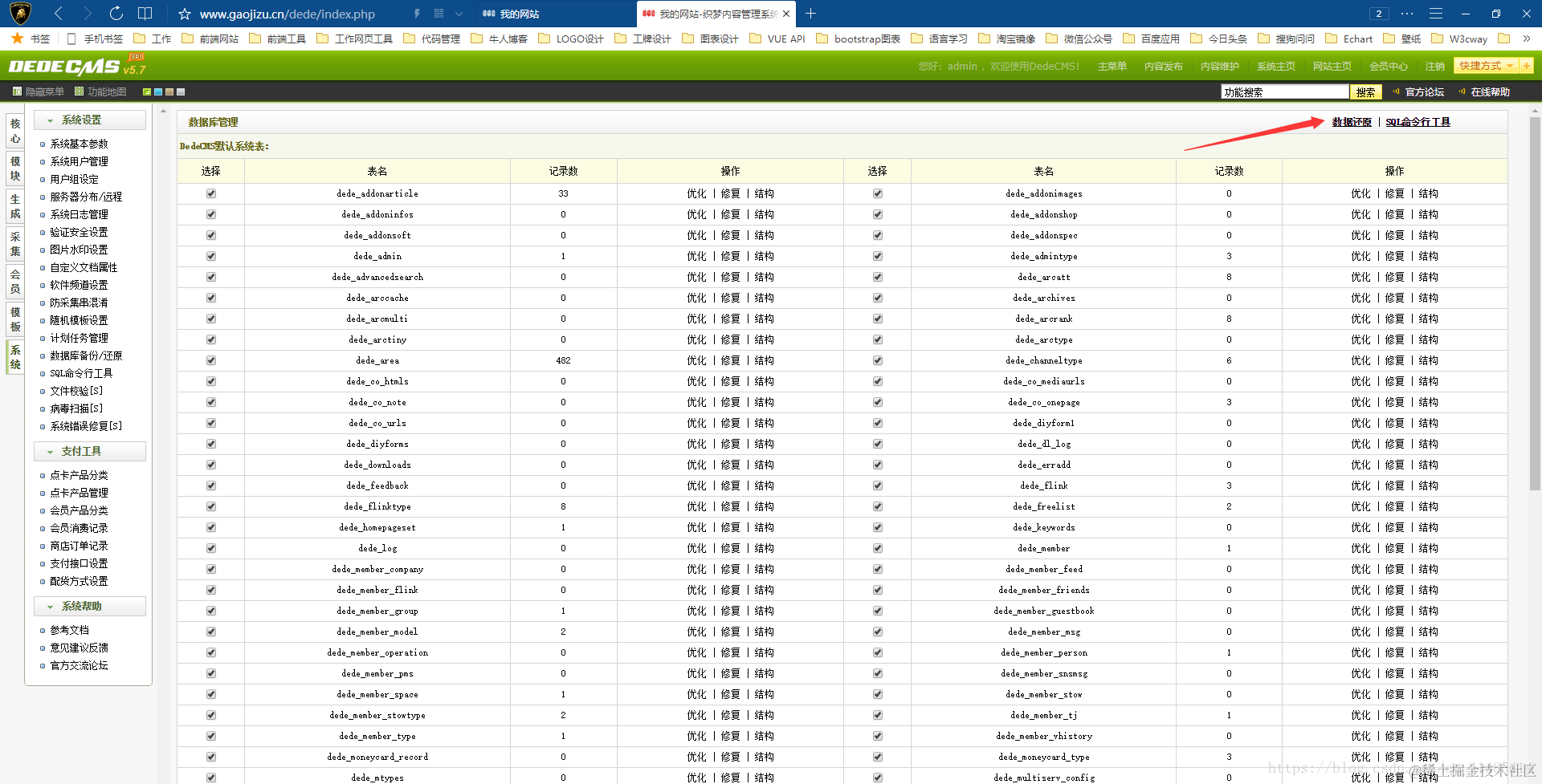 登录后台以后我们直接还原数据