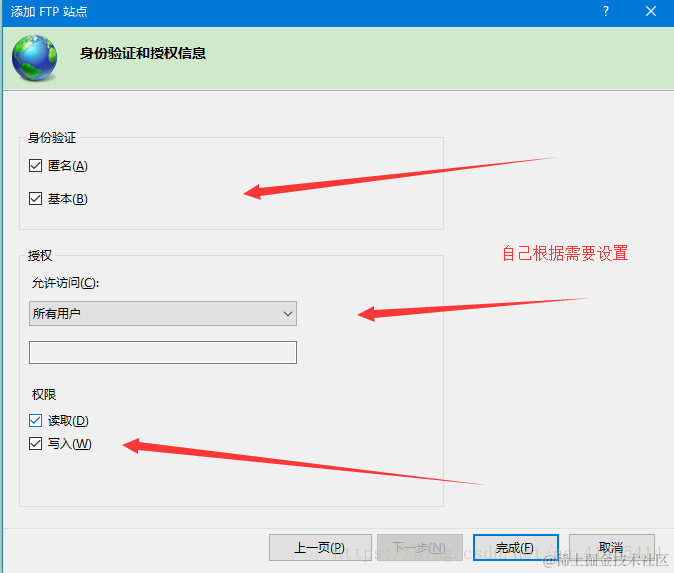 那么我们按照截图的指示,添加FTP站点出来,然后设置,这样:
