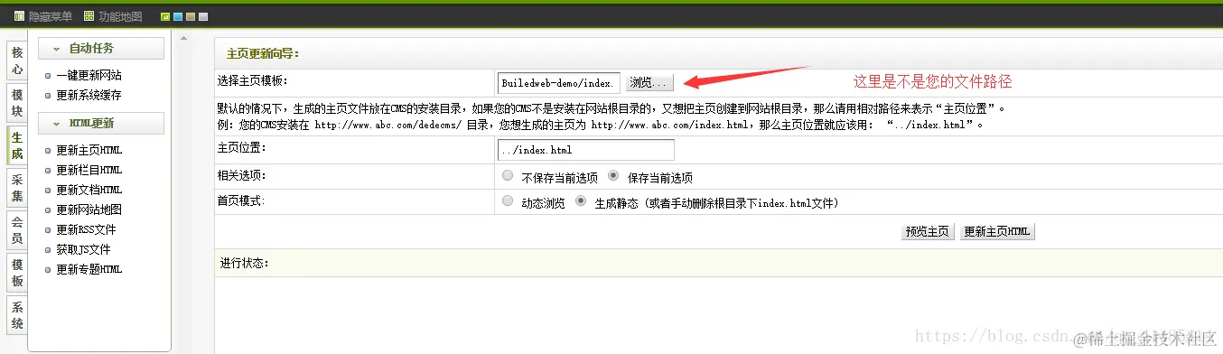 -我们简单的回顾一下之前做的步骤: -打开xampp -打开apach的admin -点击安装 -一直下一步就行 -最后安装结束 -点击登录后台 -账号:amdin -密码:admin -登录 -然后把你写的网站代码那个文件夹。移到xampp-htdocs-template(是文件夹) -然后打开xampp -进入apach后台 -将写好的html文件全部改为htm后缀的 -进入dede的系统菜单 -点击系统基本参数 -将参数按照要求改好 -点击生成菜单 -点击更新主页 -选择主页模板 -更改为你自己的主页 -生成静态 -更新主页html