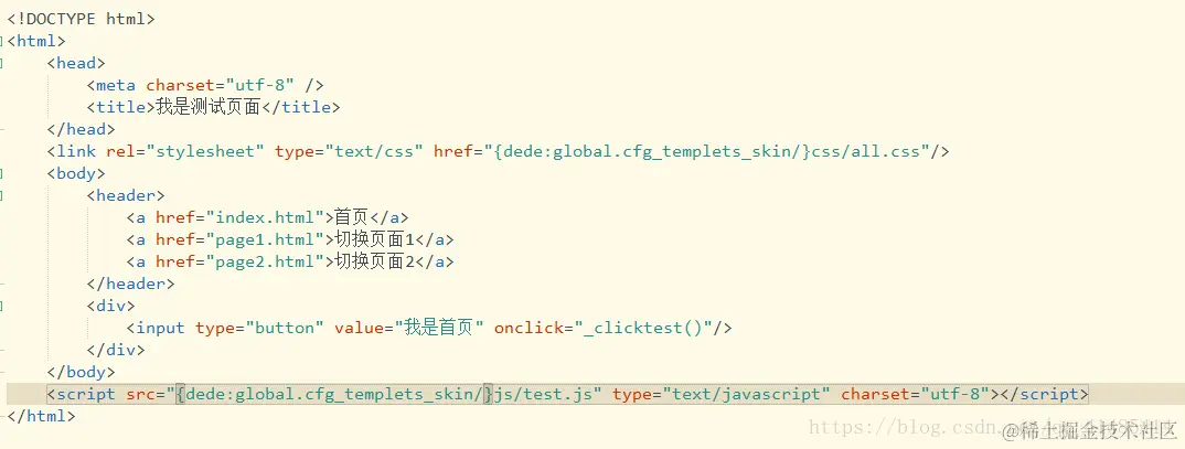 <input type="button" value="我是首页" οnclick="_clicktest()"/>
