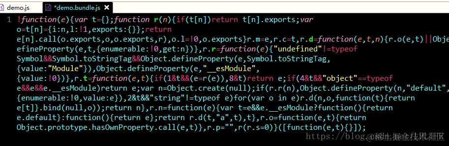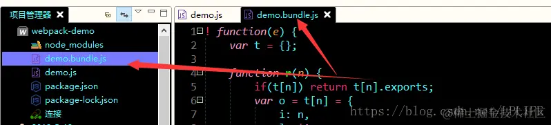 更换打包命令为: webpack demo.js -o demo.bundle.js