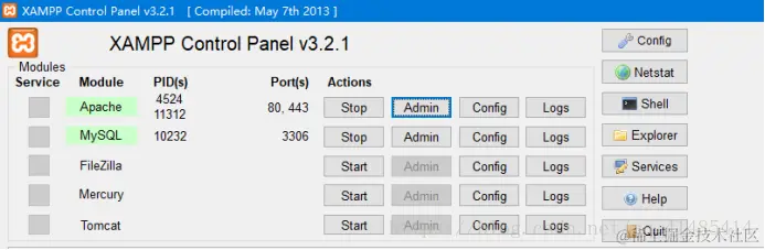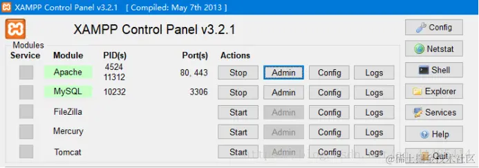 点击启动以后,点击apach的admin这里,会跳转到这样的一个页面,