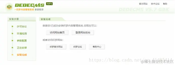 安装结束了。这个时候我们点击登录网站后台