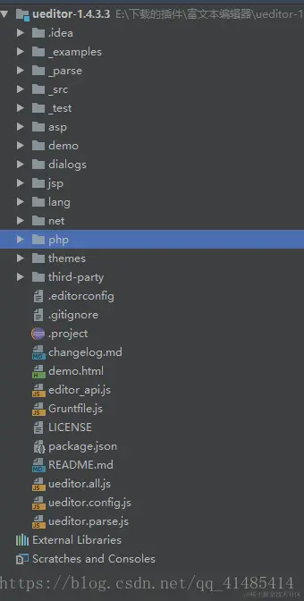 其实几乎所有的富文本编辑器都是一样的模子,下载的时候分为好几个版本的,您可以根据需要自己下载对应的版本,其中有一个源码的版本是集成了所有的版本,相对的文件比较大一些,如图所示: