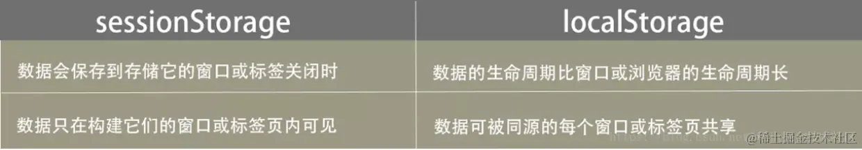 我画了一个sessionStorage和localStorage区别表,大家看一下: