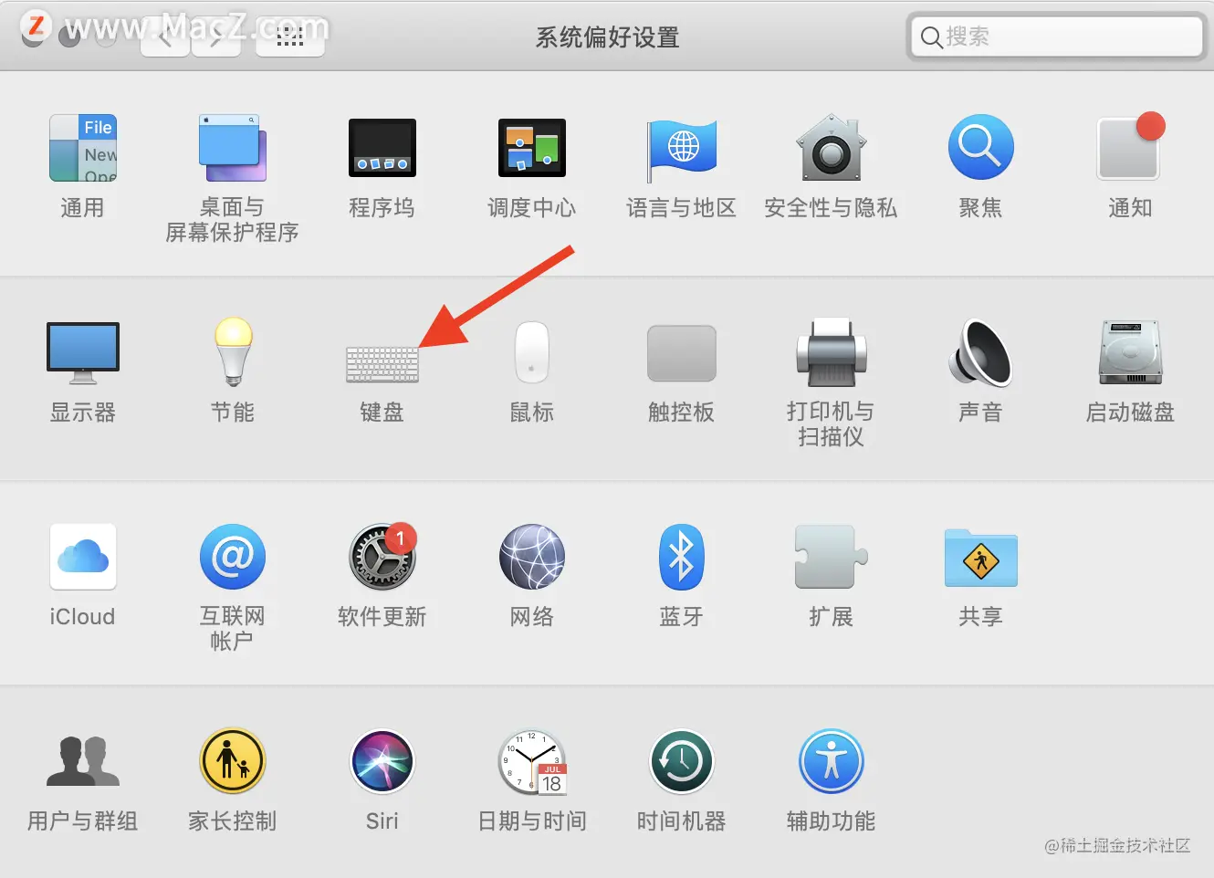 首先到「系统偏好设置」打开「键盘」: