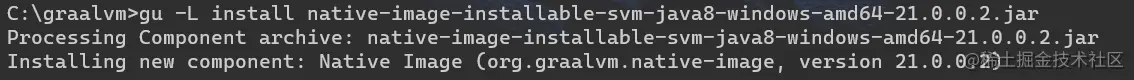 gu -L install native-image-installable-svm-java8-windows-amd64-21.0.0.2.jar