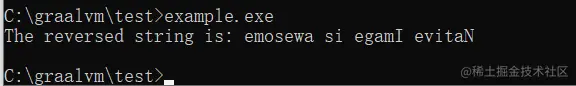 public class Example { public static void main(String[] args) { String str = "Native Image is awesome"; String reversed = reverseString(str); System.out.println("The reversed string is: " + reversed); }