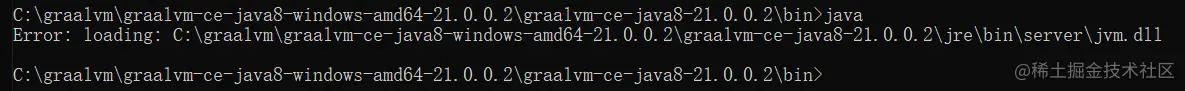 Error: loading: ... graalvm-ce-java8-21.0.0.2jre\bin\server\jvm.dll