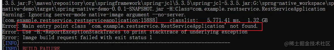 Error: Main entry point class 'com.example.restservice.RestServiceApplication' not found.