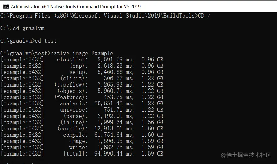 3)进入x64 Native Tools Command Prompt命令行环境后,再执行native-image,进行打包