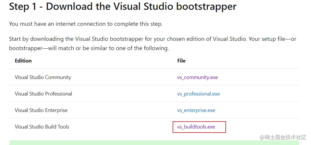- 点击vs_buildtools.exe安装C++编译环境,需要联网下载,大概1.6g大小,离线安装参考Windows C++ build Tools离线安装