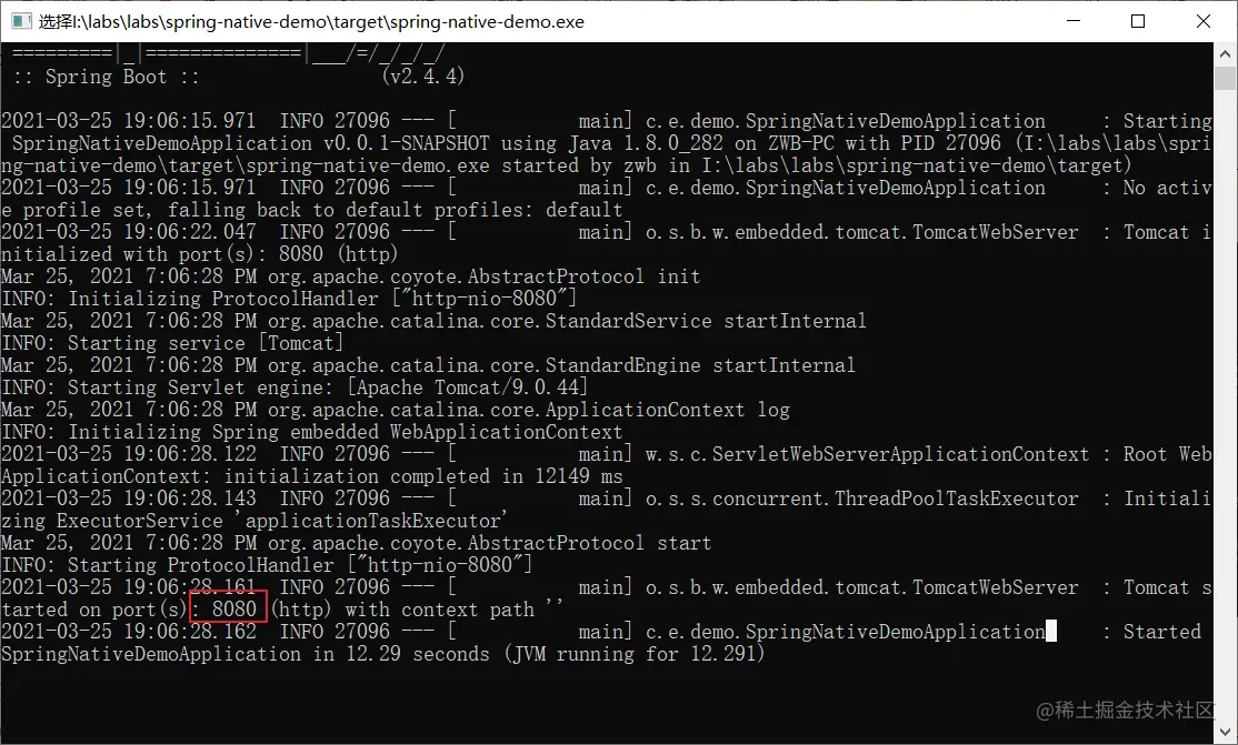 目前Spring Native 最新版本为 0.9.1仅支持Spring Boot 2.4.4,所以我们创建Spring Boot项目的版本号也必须是这个版本。