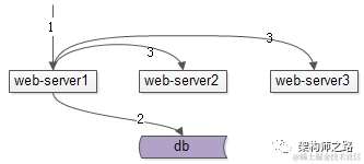 第一种方案,可以通过单节点通知其他节点。如上图:写请求发生在server1,在修改完自己内存数据与数据库中的数据之后,可以主动通知其他server节点,也修改内存的数据。