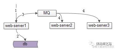 第二种方案,可以通过MQ通知其他节点。如上图,写请求发生在server1,在修改完自己内存数据与数据库中的数据之后,给MQ发布数据变化通知,其他server节点订阅MQ消息,也修改内存数据。