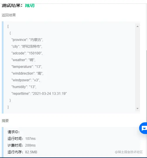 设置好后我们可以点击测试,点击运行测试,我们可以看到调用的结果