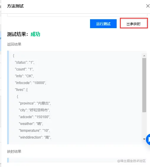 成功后我们点击【出参映射】