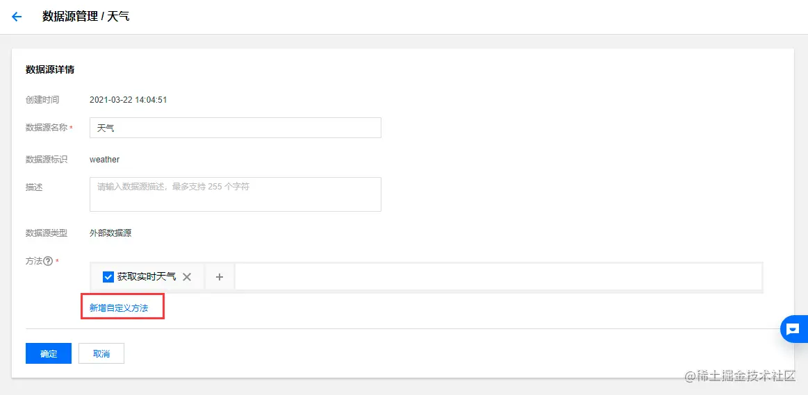 在编辑页面点击【新增自定义方法】增加一个方法