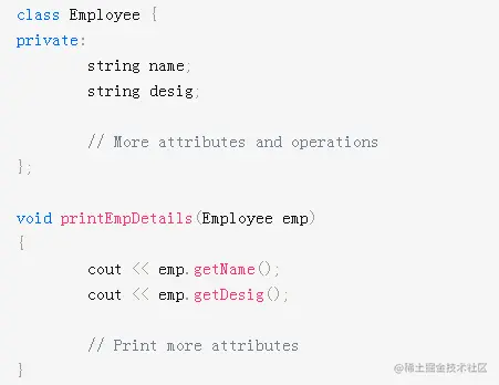 以上代码的问题是:每次调用printEmpDetails()时,都会构造一个新的Employee对象,其中涉及创建所有数据成员的副本。因此,更好的实现方法是将Employee作为参考。