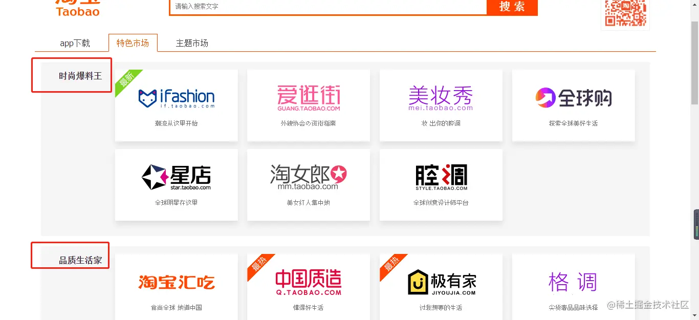 现在我们来获取淘宝网-->商品分类-->特色市场的信息: