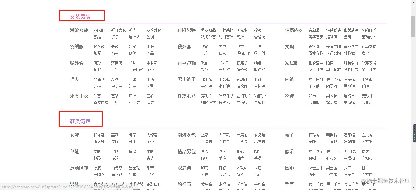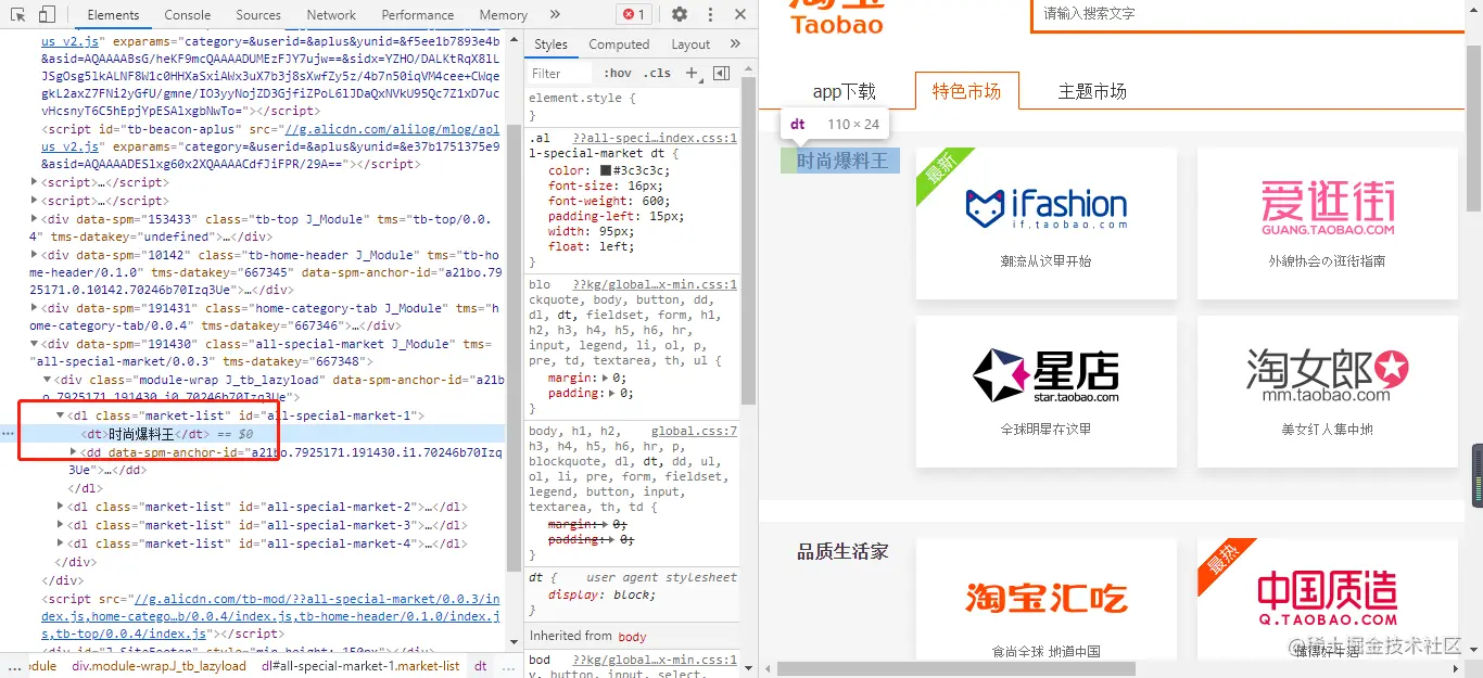 从上图中可以看到,每一个大的板块都在dl标签内部。