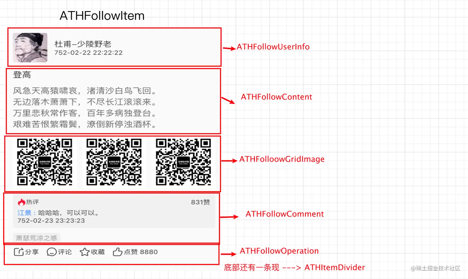 - 通过 ATHFollowItem 创建,构建每一条 Item
