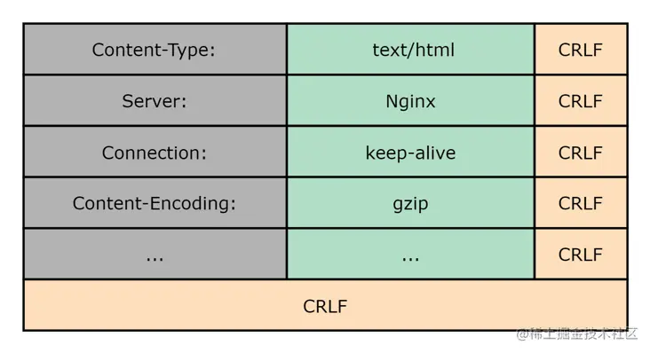 每个 header name 都会跟一个冒号,然后时一个可选的空格,每个 header 以 CRLF 结尾,最后还会保留一个空行作为 header 部分的结束标识