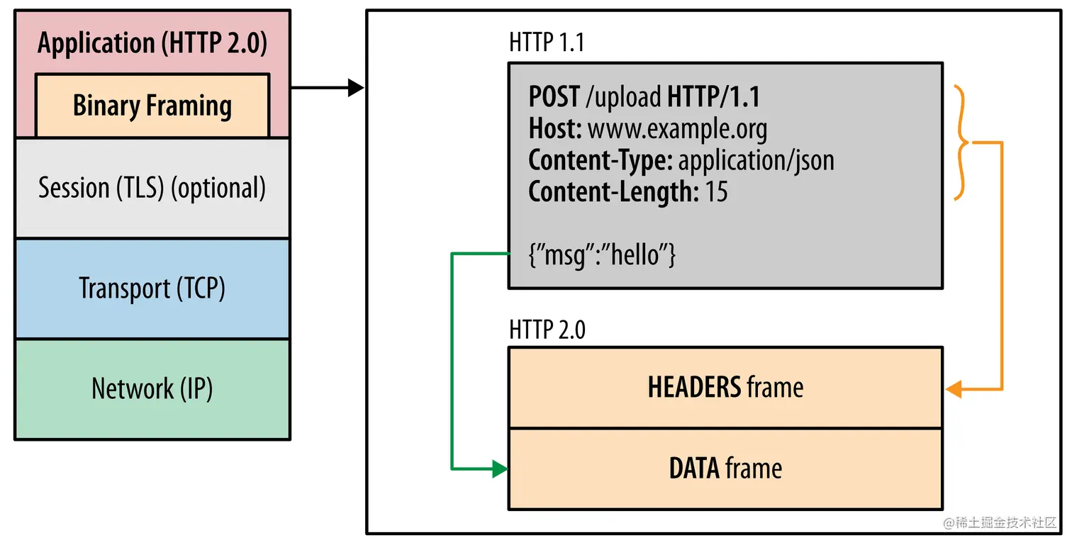 HTTP/2 性能提升的关键,主要在于新的二进制分层配合多路复用设计,降低了连接数的占用,浏览器环境下提升会比较明显