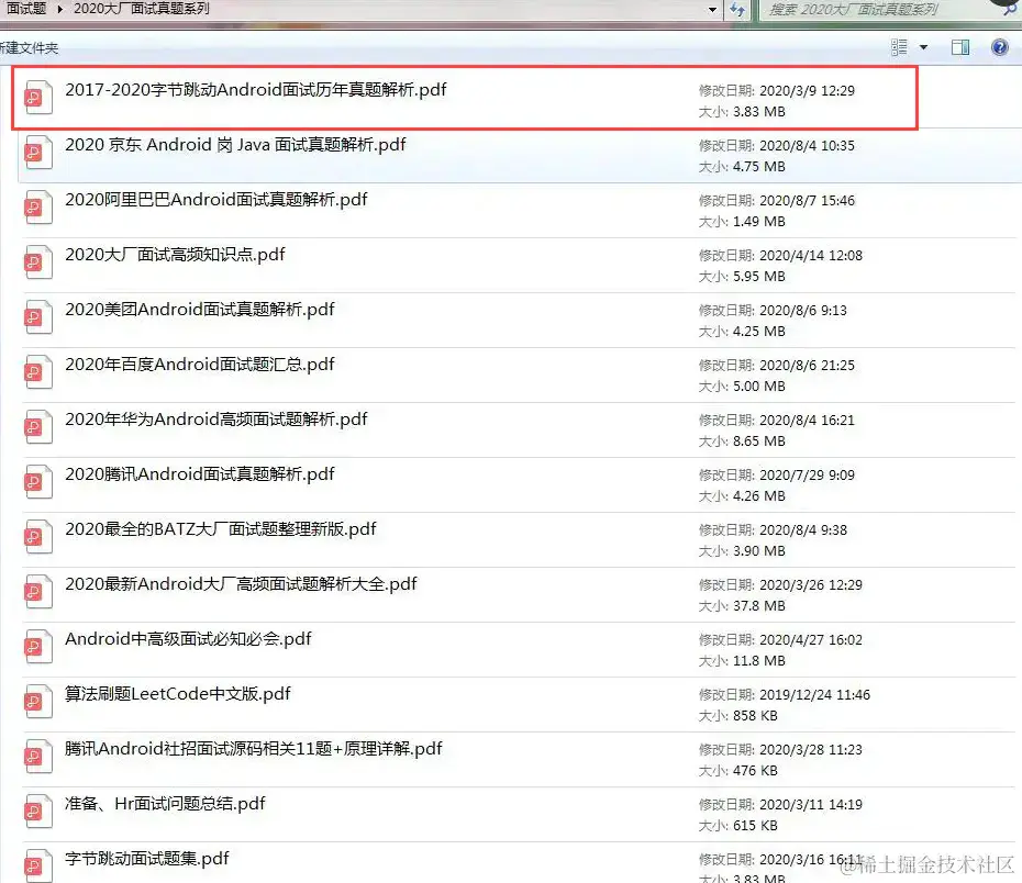 PS:之前因为秋招收集的二十套一二线互联网公司Android面试真题 (含BAT、小米、华为、美团、滴滴)和我自己整理Android复习笔记(包含Android基础知识点、Android扩展知识点、Android源码解析、设计模式汇总、Gradle知识点、常见算法题汇总。)