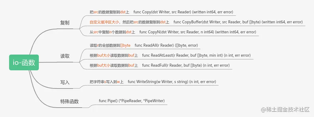 上面思维导图中虽然方法,接口一大堆,但是我们正常用的话用下面的几个函数就可以了,这几个函数也是对io包里的方法进一步封装。