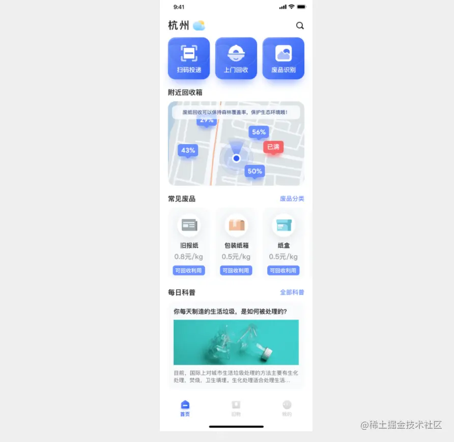 去年12月,我被邀请担任摹客产品设计大赛的评委,在几百个创意中,有一个垃圾回收行业的产品设计非常亮眼,该作品最终夺得了此次设计大赛的冠军。它的功能设计,基本涵盖了市场上主流垃圾回收软件的功能,一起来看下吧。