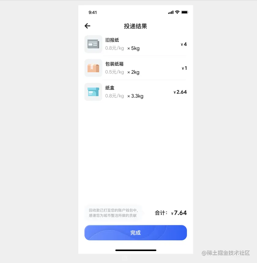 点击完成,回收款自动进入钱包,用户可在钱包将收益提现到微信零钱或支付宝。