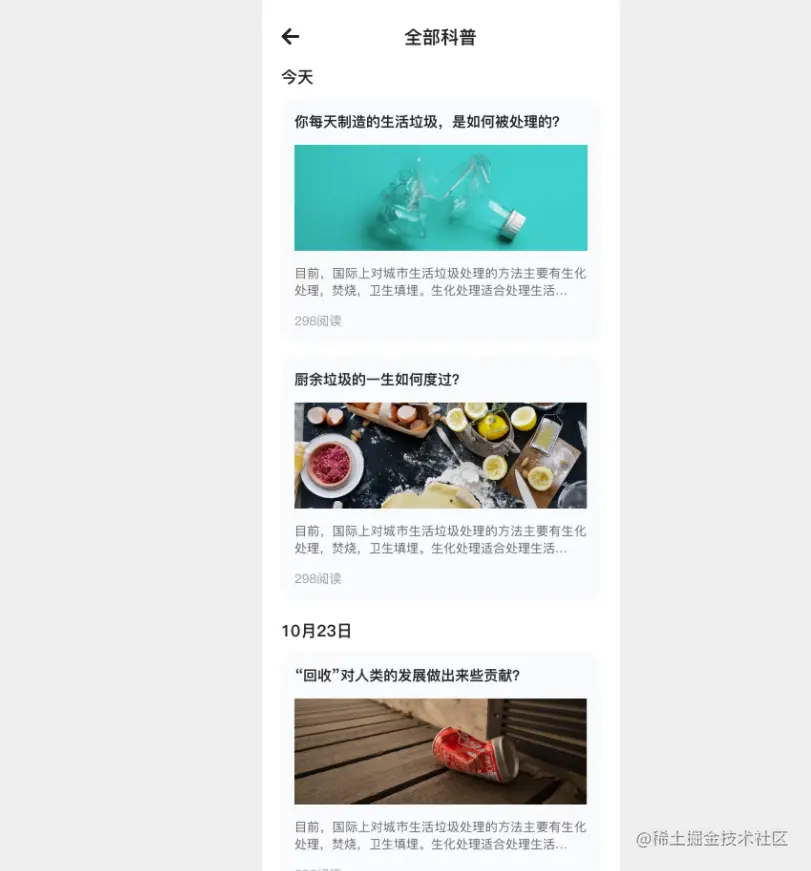 2)科普;在首页,有“每日科普”模块,点击“全部科普”可进入文章模块。