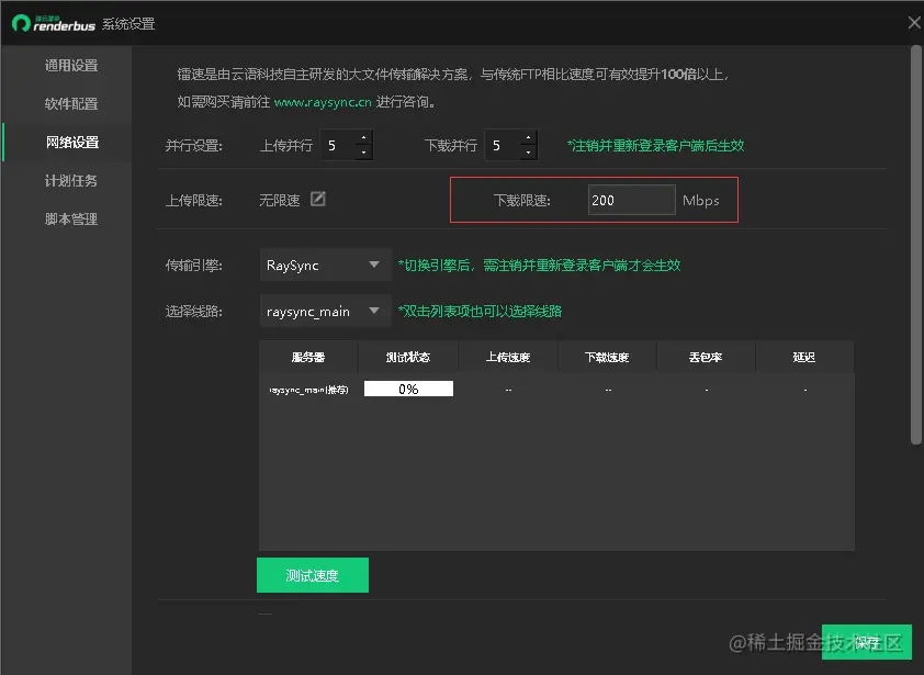6、下载限速默认值为200Mbps: