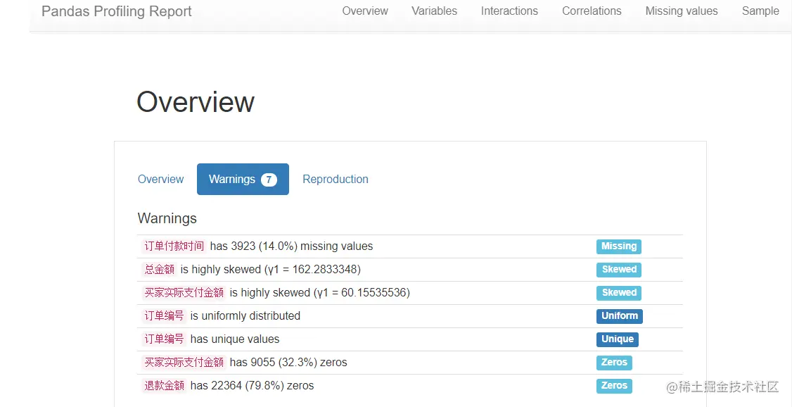 # 利用pandas_profiling一健生成数据情况(EDA)报告:数据描述、缺失、相关性等情况