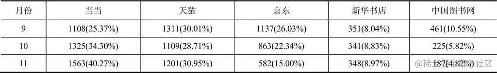 举例: 新书在各销售渠道的销量