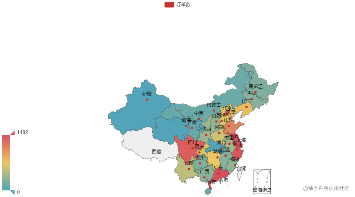 用直观的地图来观察成交订单数的分布情况